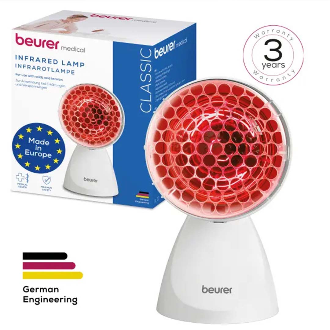 The soothing heat from the Beurer infrared lamp can be used for prevention, but also to relieve discomfort. The IL 11 has an output of approx. 100 watts and is ideal for use with colds, tension or muscle soreness. The lamp shade can be set to 5 different positions, giving you the flexibility to tailor the treatment to your needs.